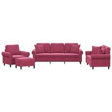 VIDAXL - Set di Divani 3 pz con Cuscini Rosso Vino in Tessuto