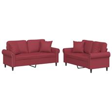 VIDAXL - Set di Divani 2 pz con Cuscini Rosso Vino in Similpelle