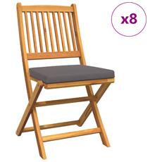 VIDAXL - Sedia da giardino pieghevole con cuscino grigio 8 pezzi in legno massello di acacia