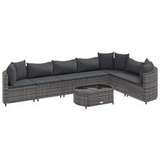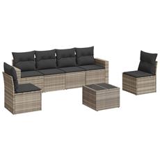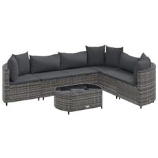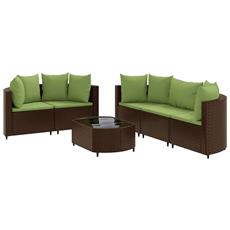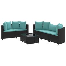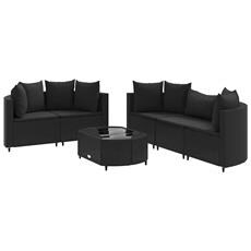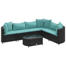 LUSSO CASADINO - Lusso Casadino - Set Divano Da Giardino 6 Pz Con Cuscini Nero In Polyrattan