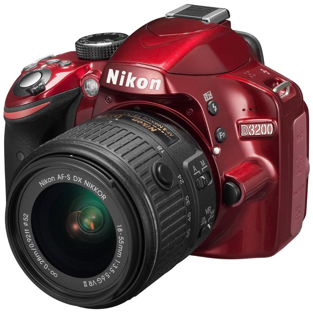 D3200 Rosso Kit AF-S DX 18-55 VR II Sensore CMOS Risoluzione 24,2 Mpx Display 3" Filmati Full HD