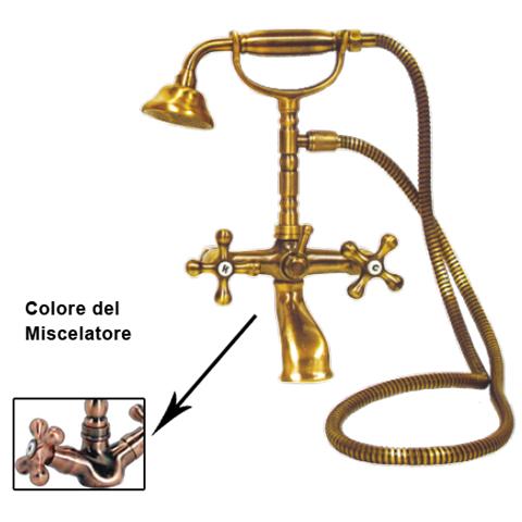 Miscelatore VascaModello Lecce BaroccoFinitura Rame AnticoDimensioni: Larghezza 17 cm da manopola a manopola Altezza 30 Cmlarghezza doccetta 18cm