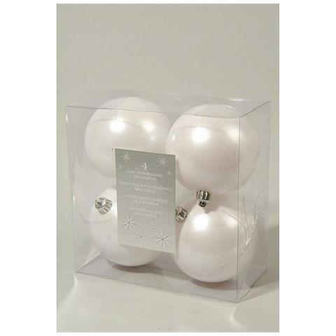 4 Palline Di Natale 10cm Bianco Invernale Addobbi Decoro Albero