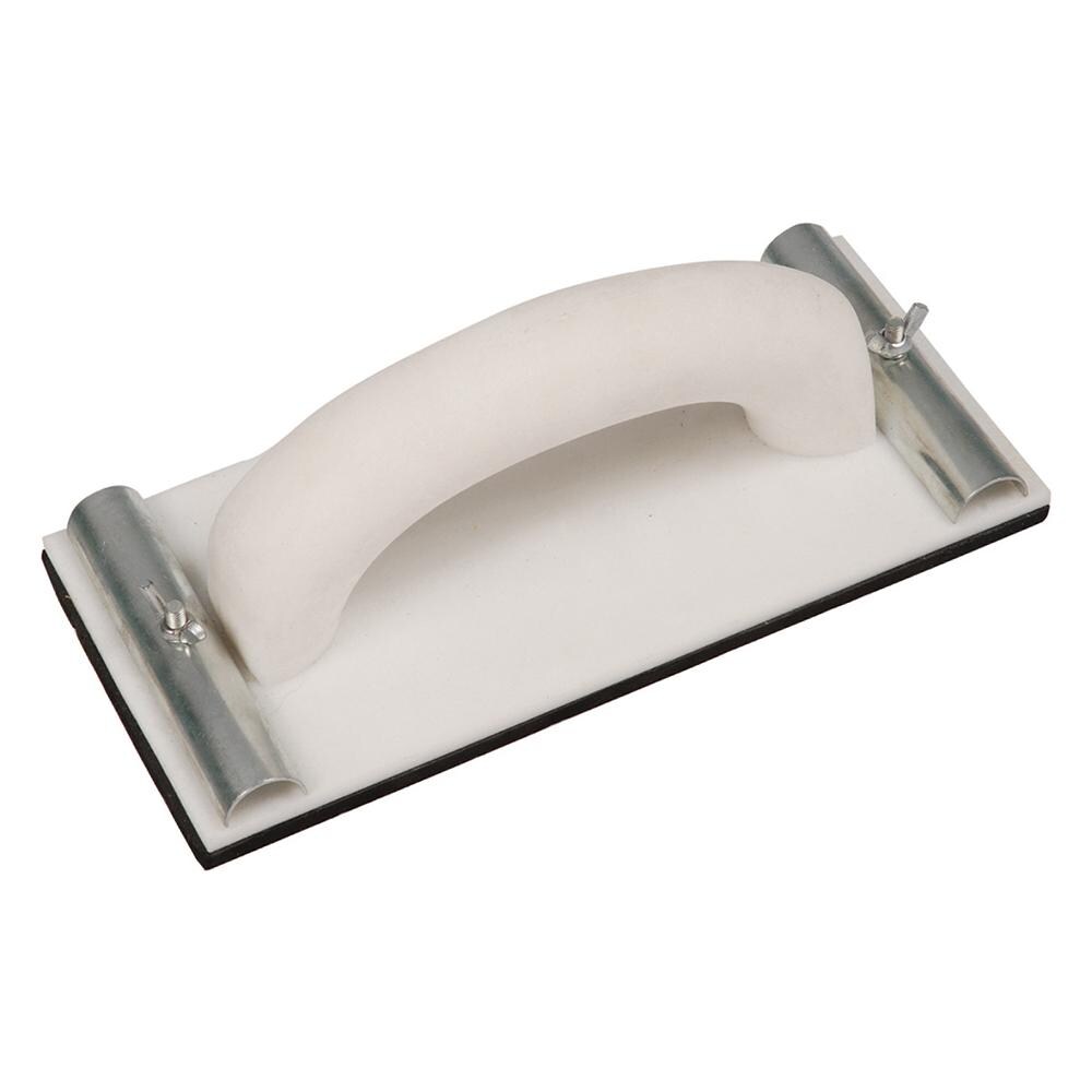 Per la levigatura di cartongesso, giunti, pareti e soffitti. 2 morsetti di fissaggio permettono l'attaccamento di rete di levigatura o carta abrasiva su un cuscinetto in gomma schiuma.