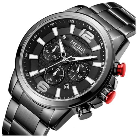 Orologio da polso al quarzo da uomo cronografo da uomo con cinturino in acciaio inossidabile orologi da polso al quarzo da uomo impermeabili luminosi orologi al quarzo (nero) megir orologio da polso al quarzo da uomo orologio da uomo con cinturino in acciaio inossidabile cronografo da uomo orologi da polso al quarzo da uomo impermeabili luminosi.