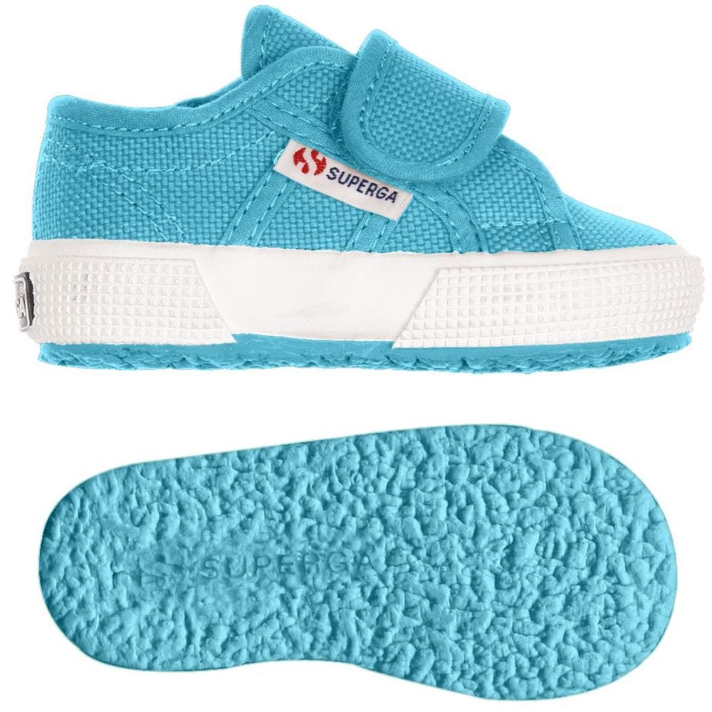La Superga 2750 baby con pratica chiusura con velcro. Tomaia in puro cotone extraforte sfoderato, perfettamente traspirante. Suola in gomma naturale vulcanizzata. Disponibile in unampia cartella colori