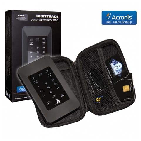 Digittrade HS256S 1TB. Capacità SSD: 1000 GB, Interfaccia Solid State Drive (SSD) : FireWire 800, Serial ATA III, USB 2.0, Velocità di lettura: 540 MB / s. Fattore di forma dell'unità SSD: 3.5", Colore del prodotto: Nero. Software forniti: Acronis True Image OEM Quick Backup. Larghezza: 130 mm, Profondità: 78 mm, Altezza: 22 mm