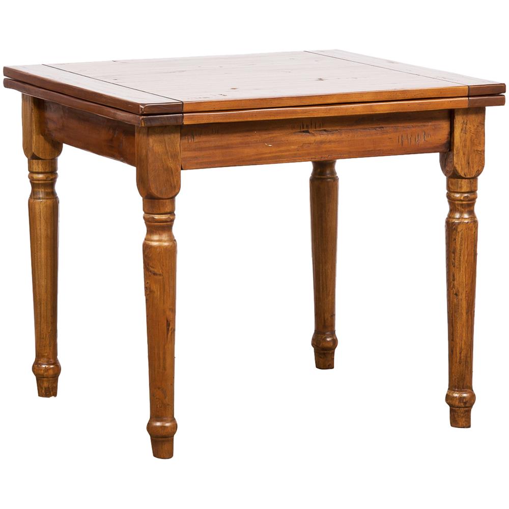 Tavolo Allungabile Country In Legno Massello Di Tiglio Finitura Noce 90x90x80 Cm