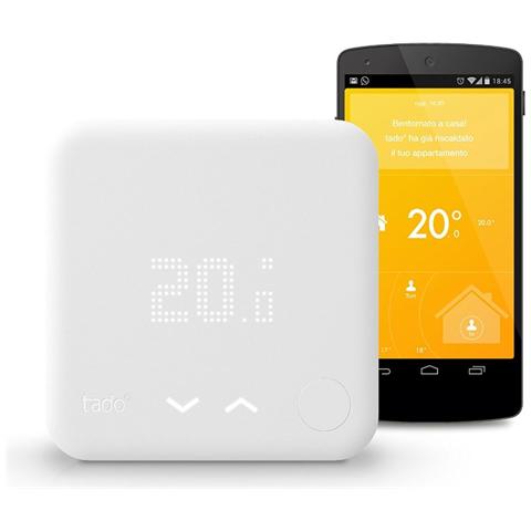 Termostato Wi-Fi Intelligente controllabile da smartphone (iOS, Android, Windows) . Regolazione della temperatura in base alla propria posizione (Geolocalizzazione) . Controllo meteo e apprendimento automatico. Compatibile con oltre il 90% delle caldaie. Promette risparmio di circa 30% nei consumi.