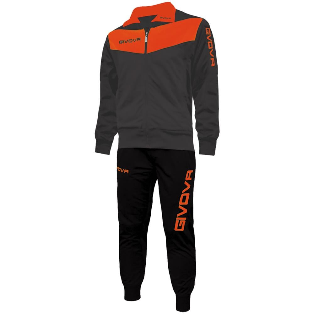 Tuta Visa Givova - Completo Di Giacca A Manica Lunga E Pantalone Di Colore Grigio Scuro / arancio Fluo Taglia L
