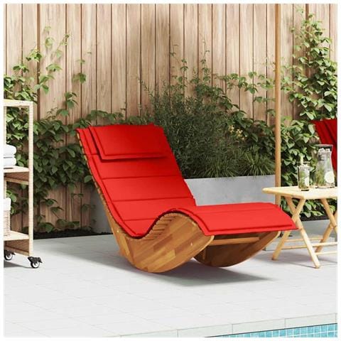 Lettino a Dondolo con Cuscino in Legno Massello di Acacia
